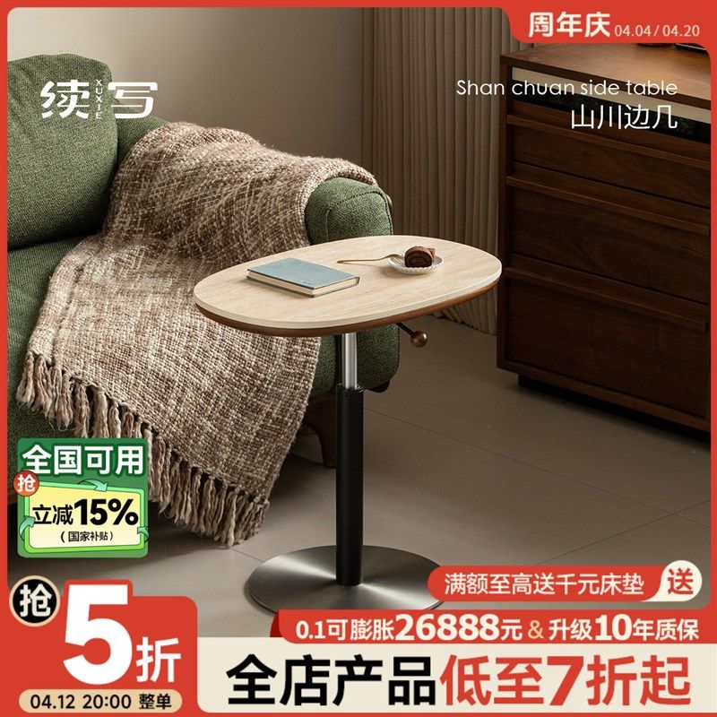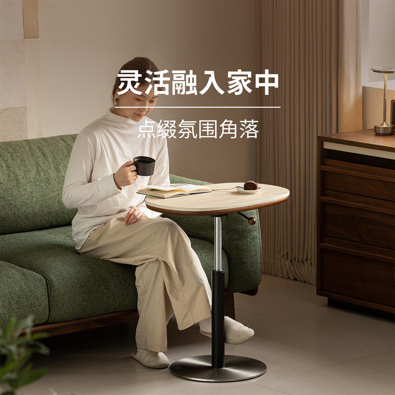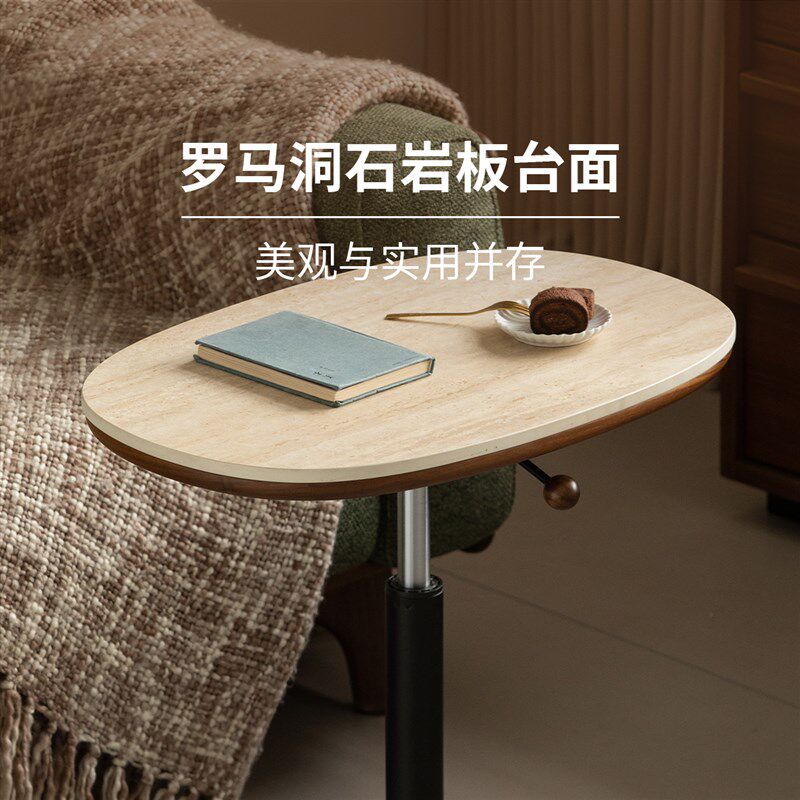 📚 续写家具升降边几椭圆洞石岩板沙发边小茶几床边黑胡桃木小桌子
