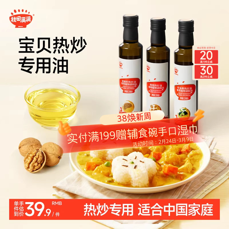 📚 秋田满满核桃油牛油果亚麻籽热炒调和油送宝宝婴儿幼儿童辅食用谱