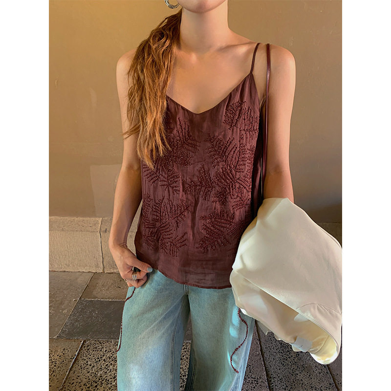 📚 【2/25 春上新】26早春优雅深V领双根式内搭绣花吊带背心女C8330