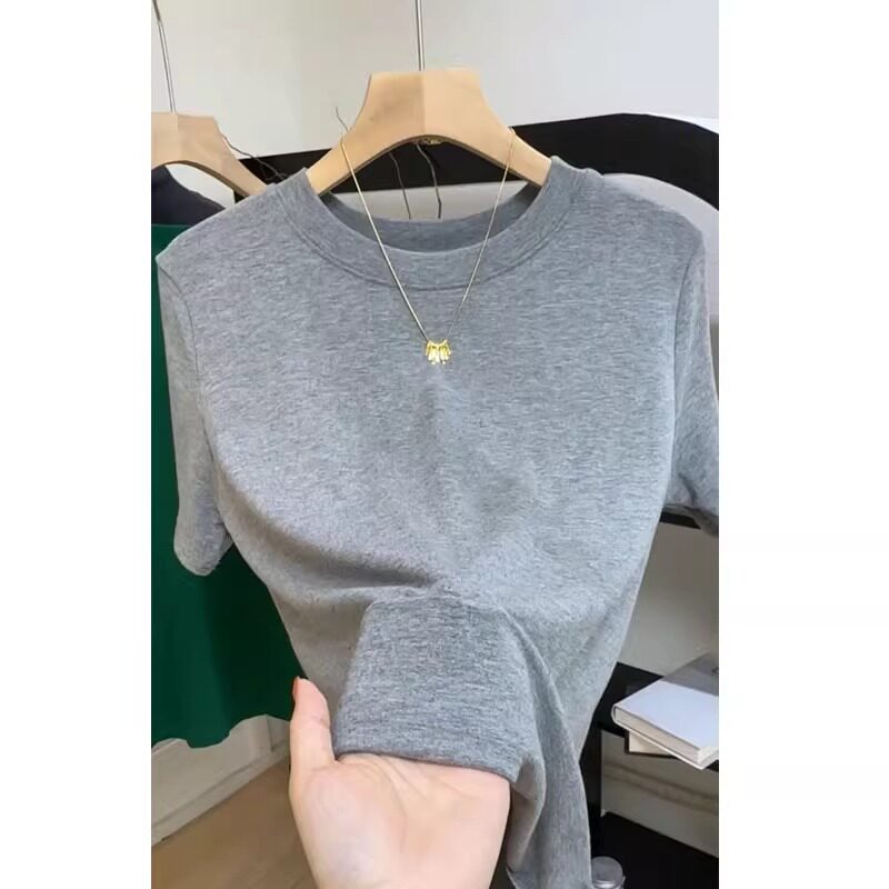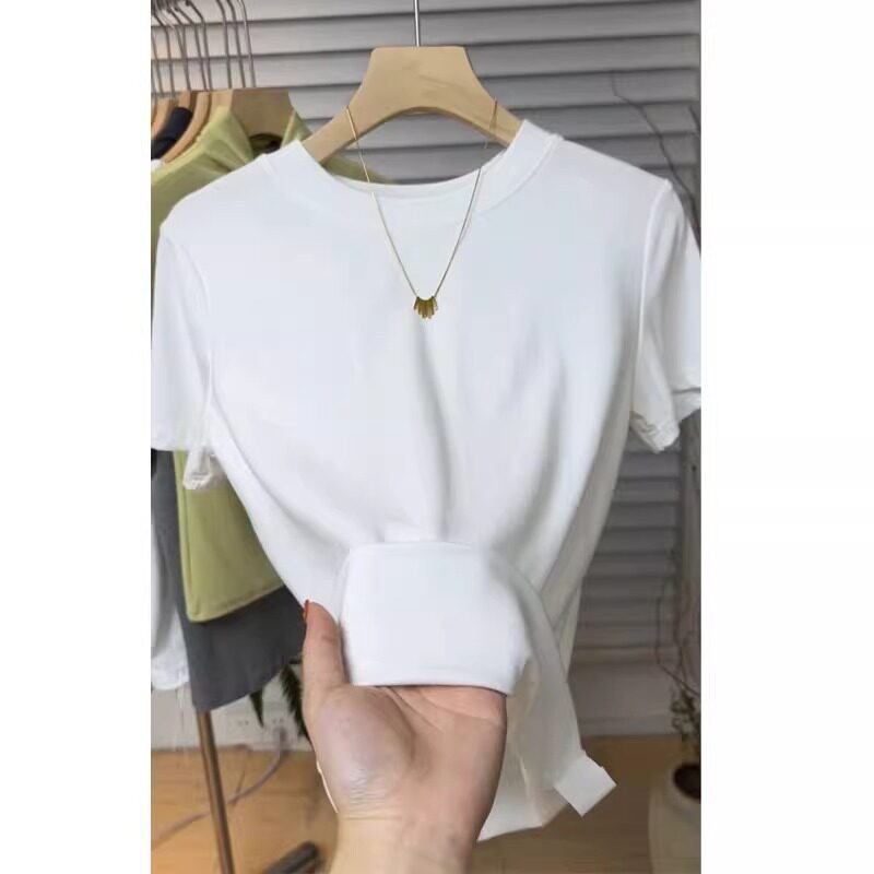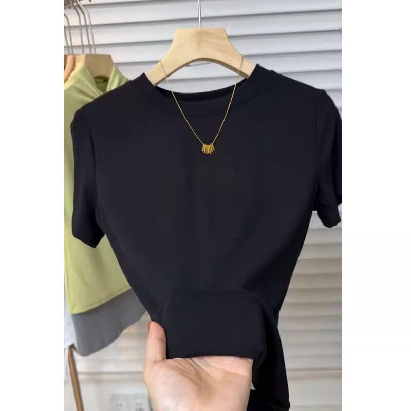 📚 莫代尔正肩短袖T恤女2026年新款夏季薄款纯色修身简约风冰丝上衣