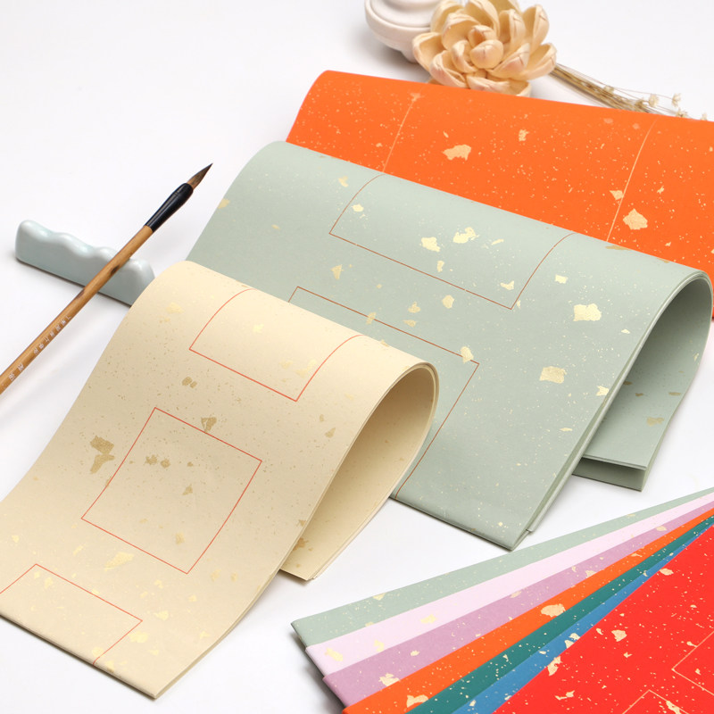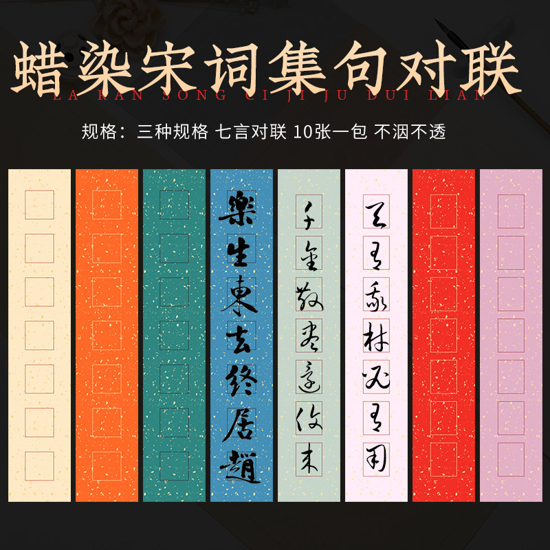 📚 锦墨堂蜡染雪花金宋词集句对联半生半熟七言手写空白对联宣纸毛笔书法楹联带格子作品考级国展宣纸安徽泾县