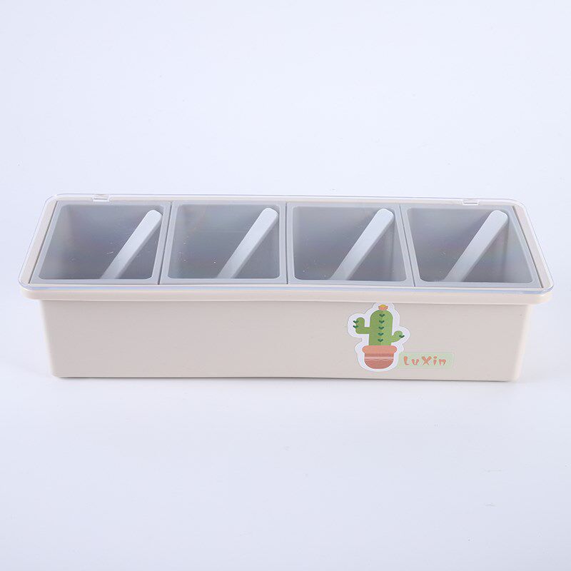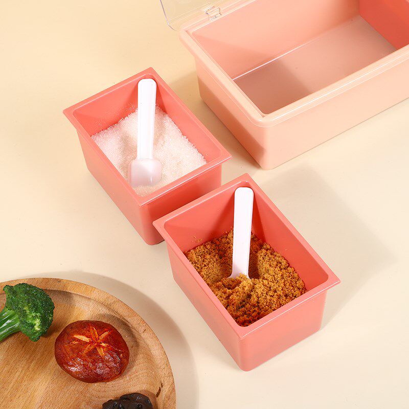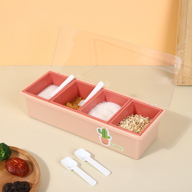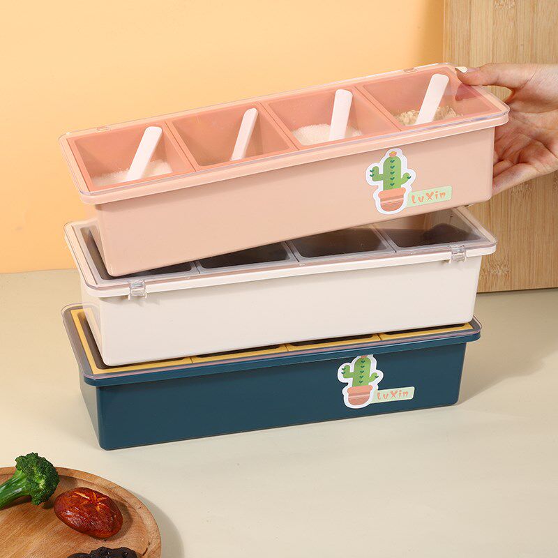 📚 调料盒四格一体家用厨房调味盒组合套装盐味精佐料收纳盒调味瓶罐