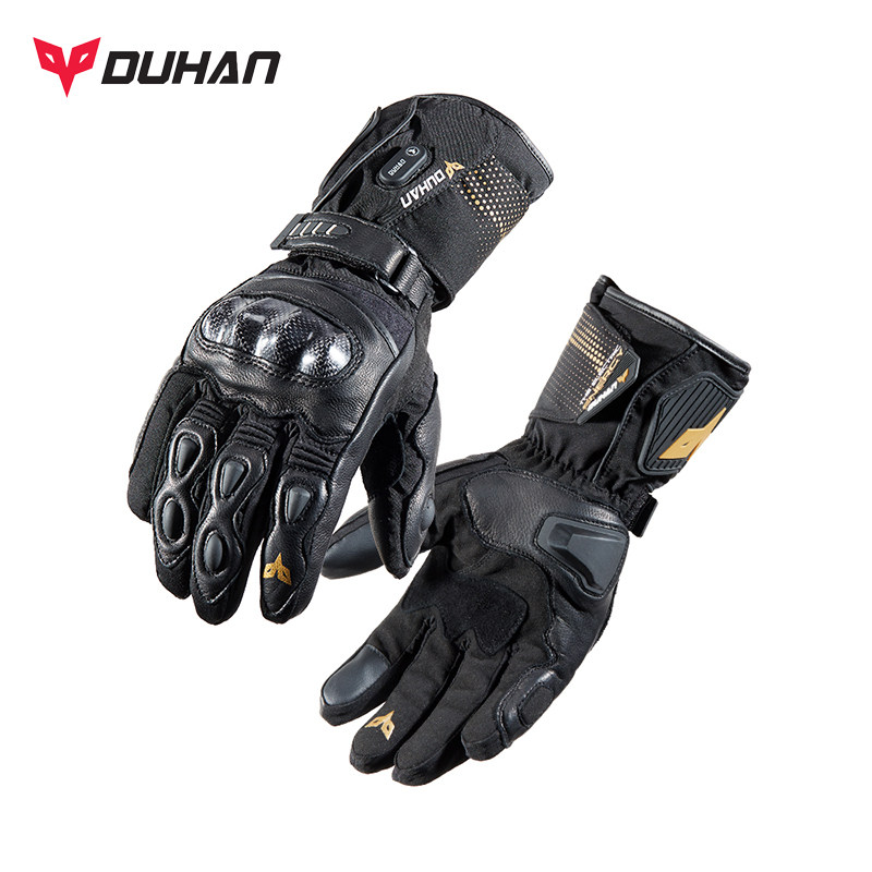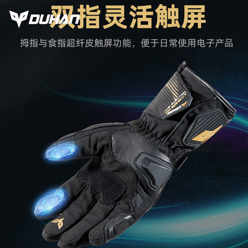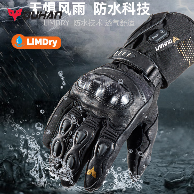 📚 杜汉电加热摩托车碳纤维手套机车骑行真皮防水男冬季防风保暖发热