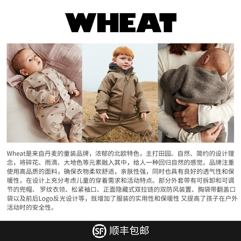 📚 丹麦Wheat 25AW新款儿童滑雪服夹棉连帽连体夹克棒球服男女秋冬