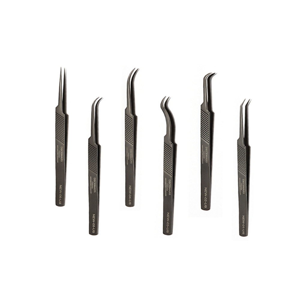 📚 DeceMars黑色假睫毛嫁接镊子工具高精密海豚手工开花夹金羽夹镊子