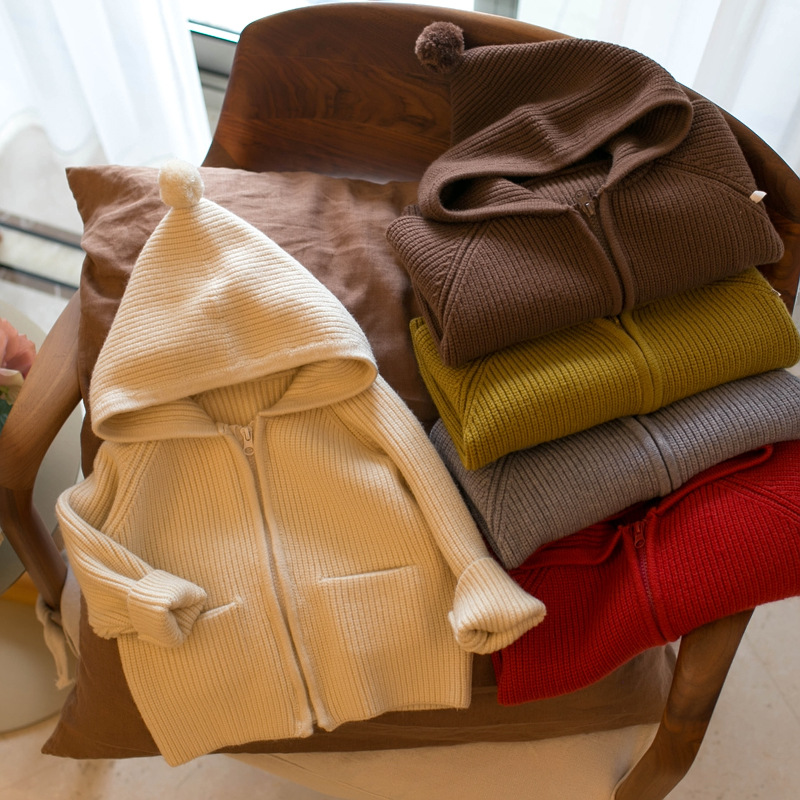 📚 女童2025毛衣新款男宝针织开衫秋冬连帽儿童洋气外套宝宝加厚上衣