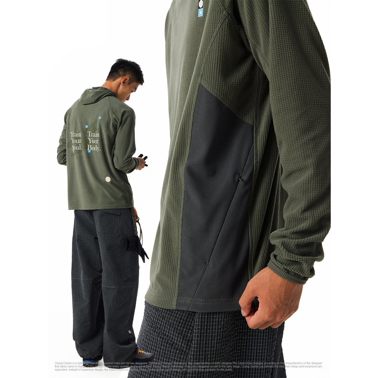 📚 CryingCenter抗静电绒面华夫格哈苏线撞色运动长袖户外连帽衫男女