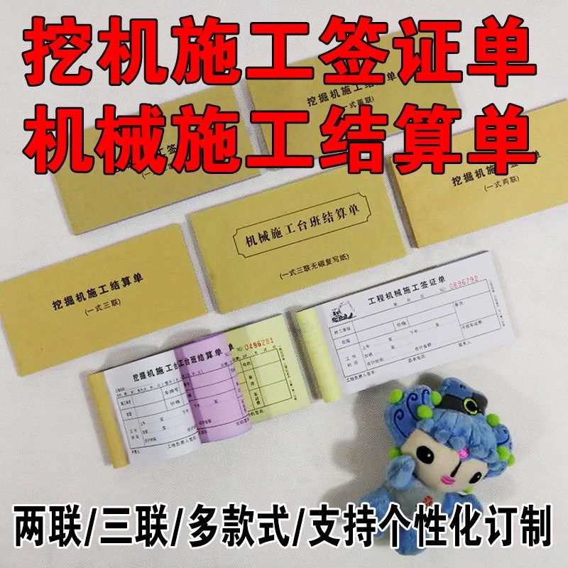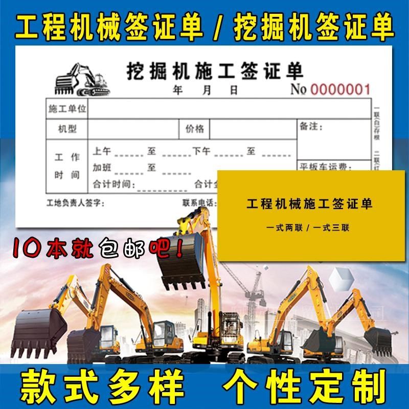 📚 挖机台班签证单 机械施工结算单 挖掘机工作业工时 签单 工程收据