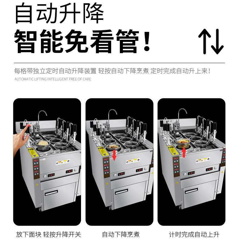 📚 升降煮面商用六汤头机动升降512煮面炉智自能定时粉炉厂家