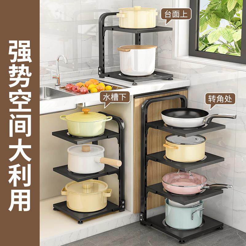 📚 厨房锅架壁挂式可调节台面免打孔放锅架墙上收纳层架家用锅具置物