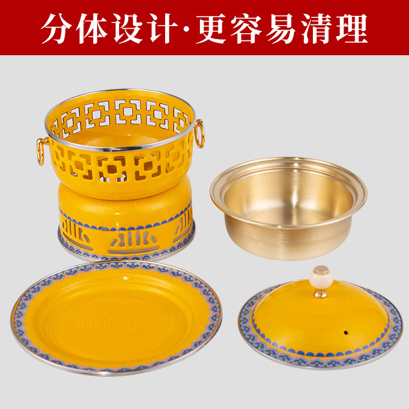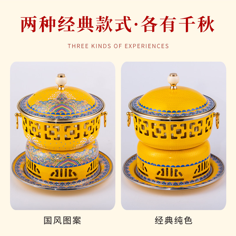 📚 景泰蓝铜火锅珐琅小火锅一人一锅单人酒精炉铜锅家用纯铜加厚商用