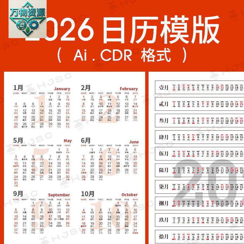 📚 2026年马年日历月历台历挂历2026农历ai格式cdr格式设计素材模版