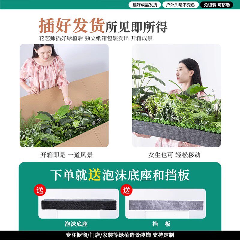 📚 仿真绿植造景组合摆设热带植物隔断花槽花箱仿生假花室内景观装饰