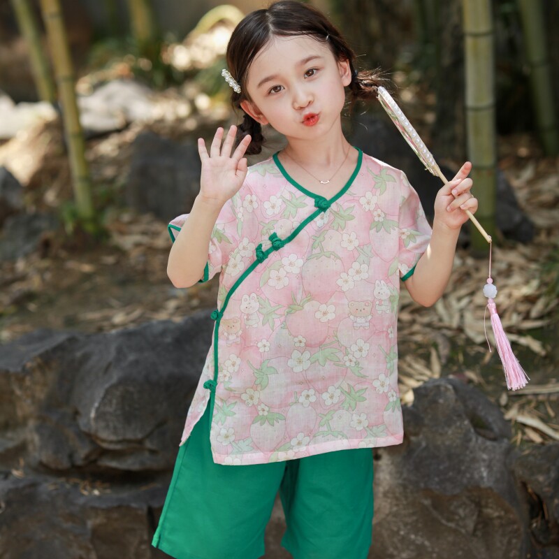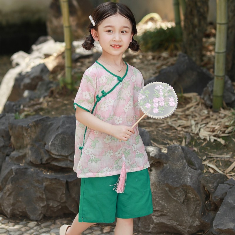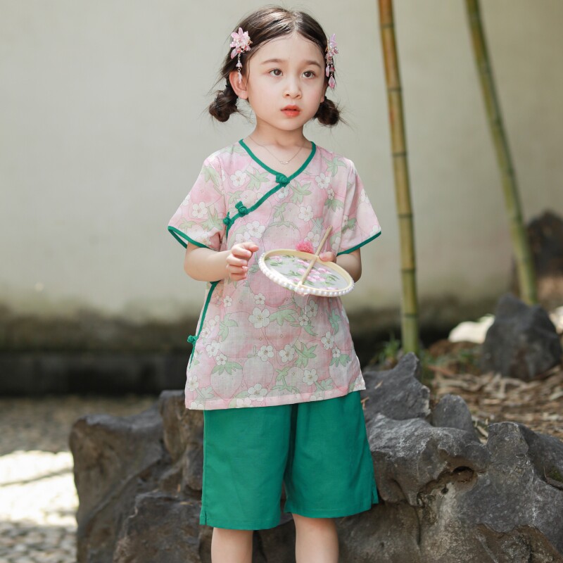 📚 儿童2025夏季新款汉服套装女童唐装二件套宝宝轻薄棉麻中国风童装