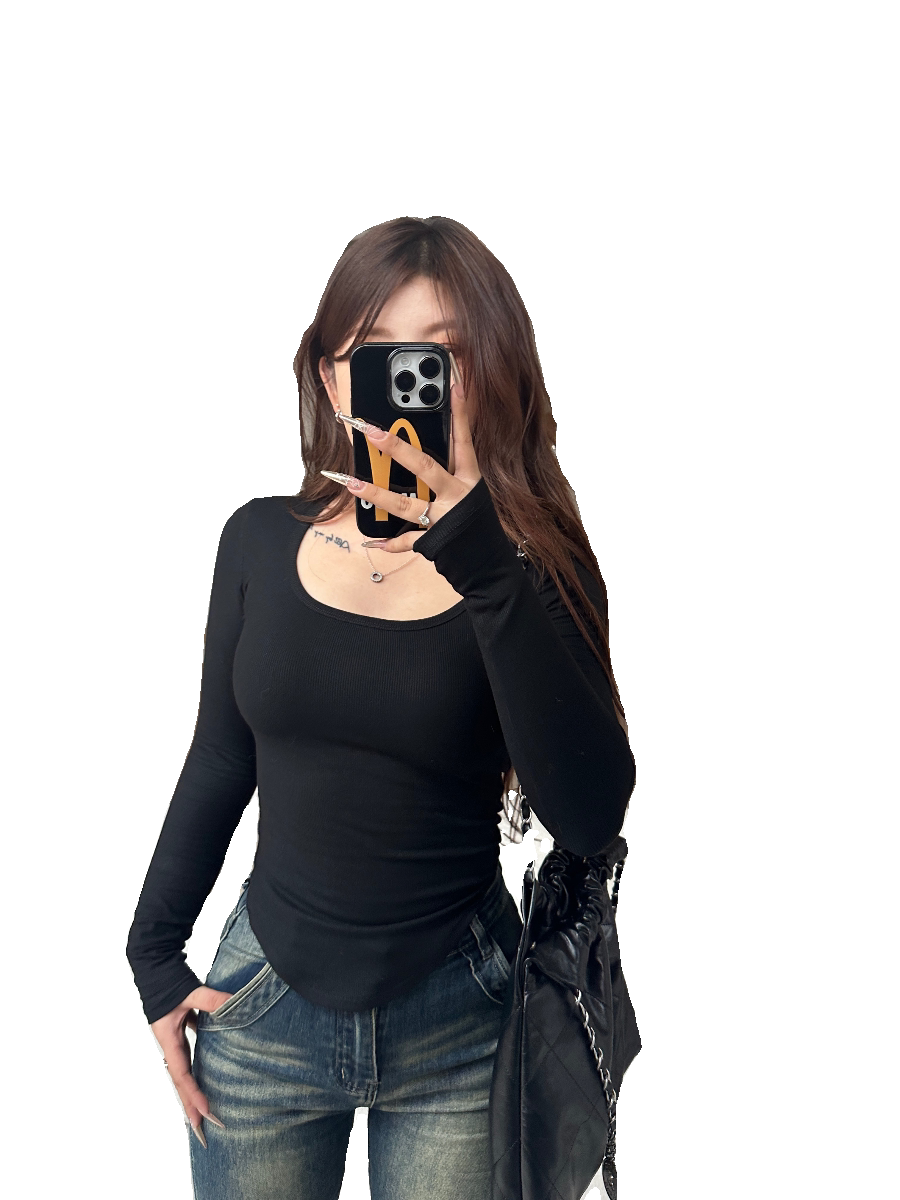 📚 PBXX STUDIO猪崽包 微胖秋冬百搭紧身遮肚子显瘦黑色长袖打底衫