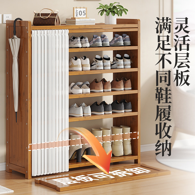 📚 简易鞋架子家用门口多层外楼道不占空间楠竹鞋柜出租屋用带遮挡帘