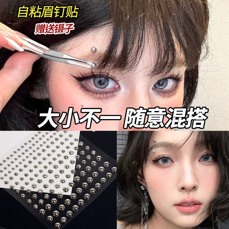 📚 眉钉贴唇钉贴自粘免打孔泪钻无洞个性酒窝假眉鼻耳钉贴唇环肚脐钉