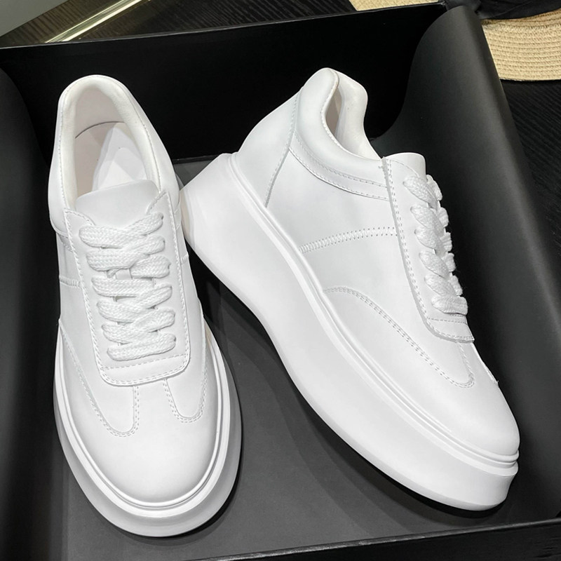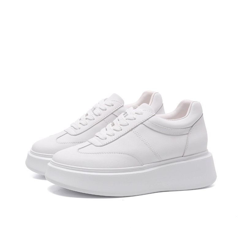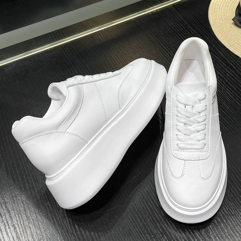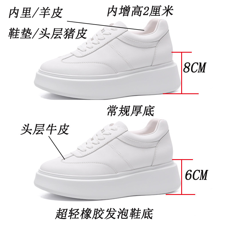 📚 真皮小白鞋女8CM内增高女鞋秋季新款牛皮厚底小个子显脚小休闲鞋