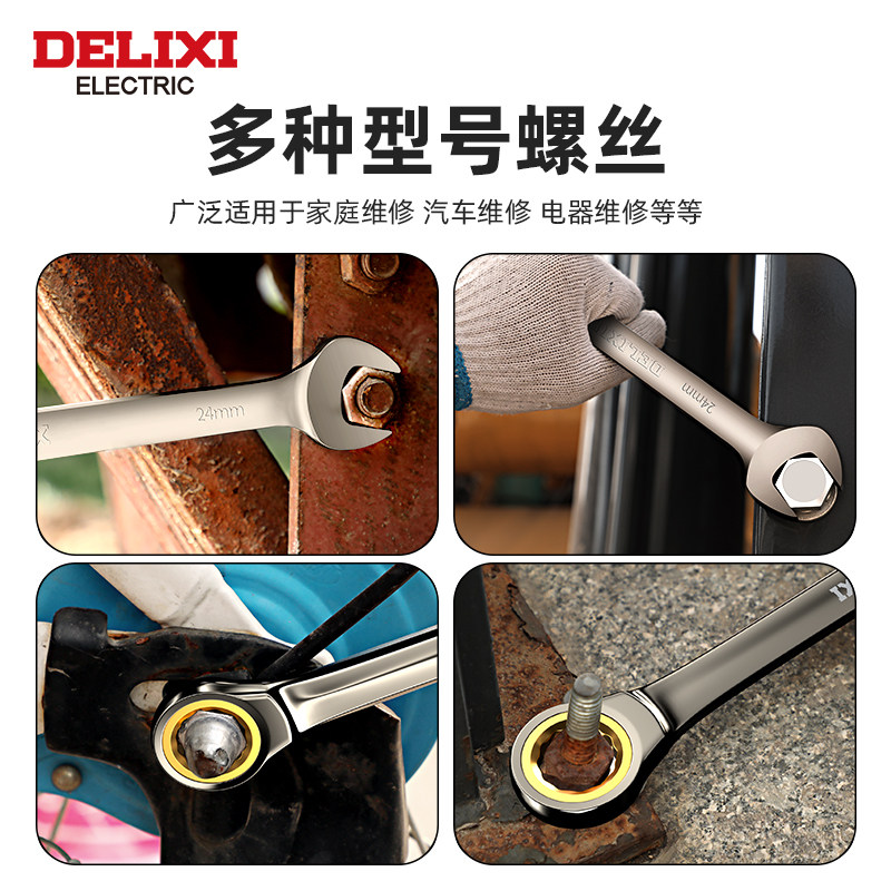 📚 德力西棘轮两用扳手快速棘轮扳手自动双向梅花开口扳手工具套装金
