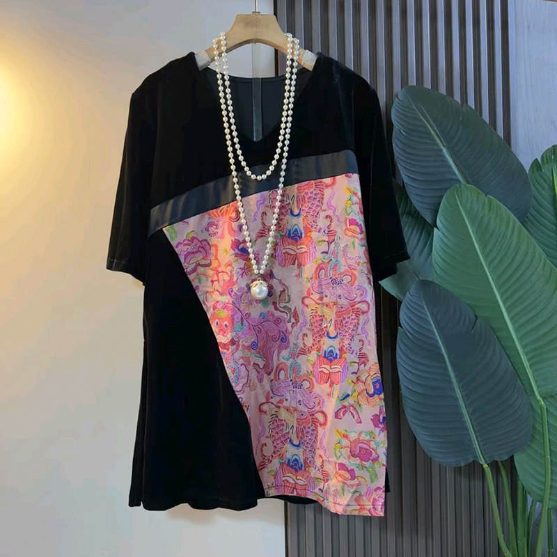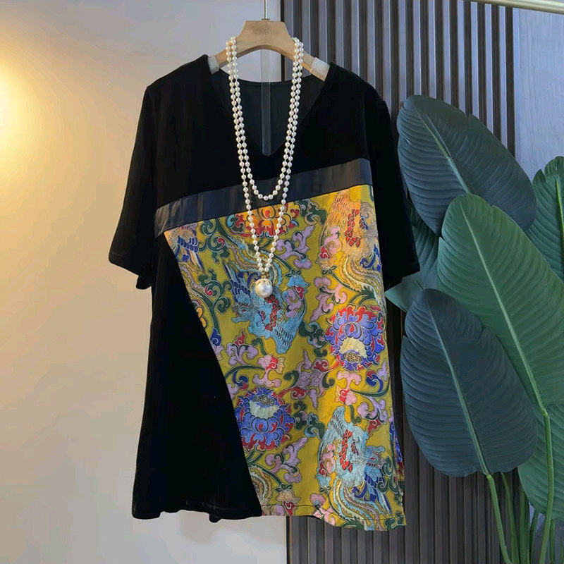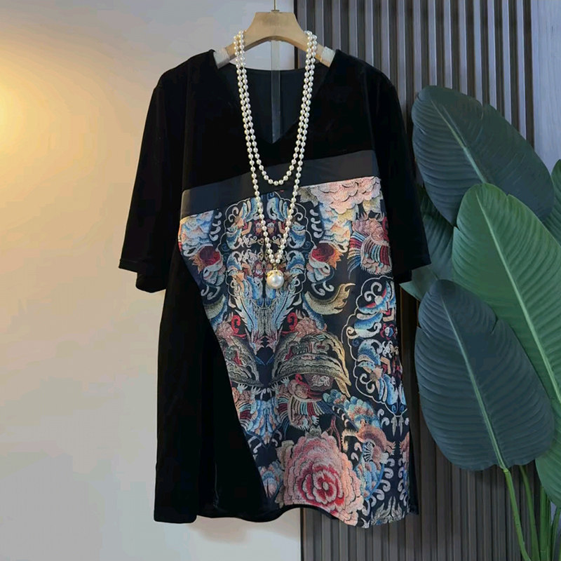 📚 大码女装中国风印花短袖上衣胖妹妹显瘦宽松T恤2026新款复古衬衫
