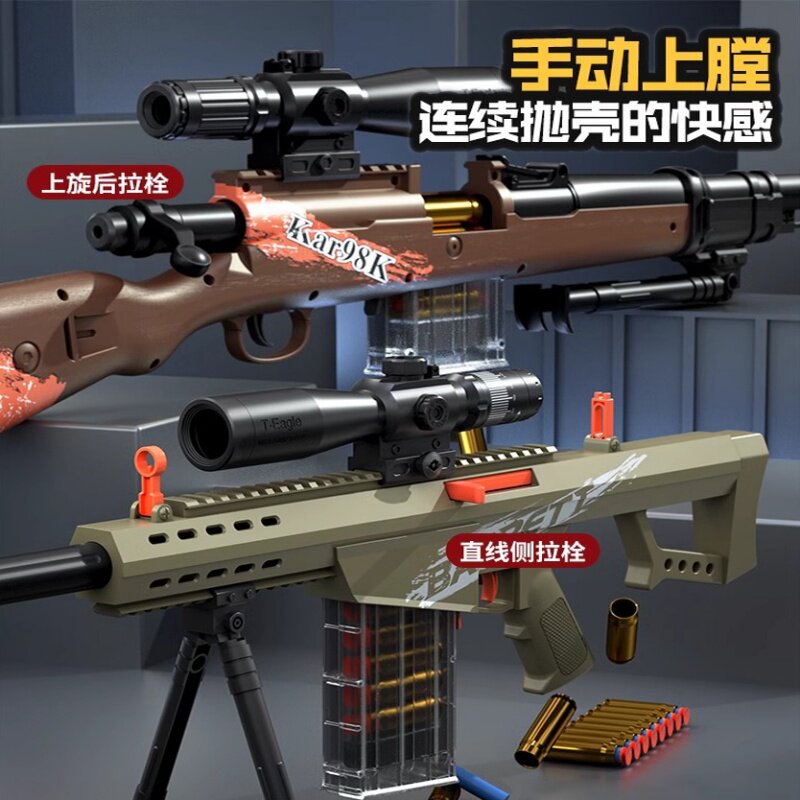 📚 超大号巴雷特抛壳软弹枪AWM仿真抢模型儿童男孩礼物98K玩具狙击枪