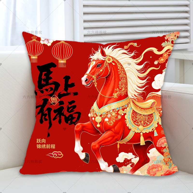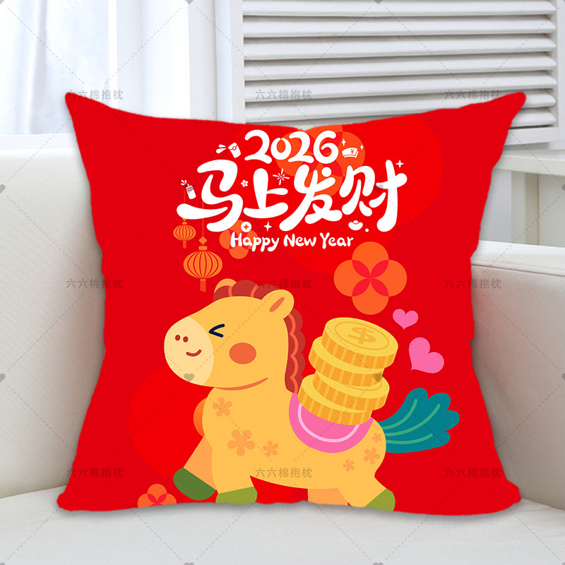 📚 2026马年吉祥物抱枕被子二合一生肖马公司礼品抱枕套靠垫定制logo