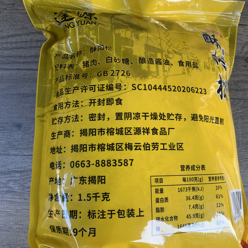 📚 逢源源祥酥肉松纯猪肉松1500g营养食品饭团寿司配料烘焙食堂餐饮