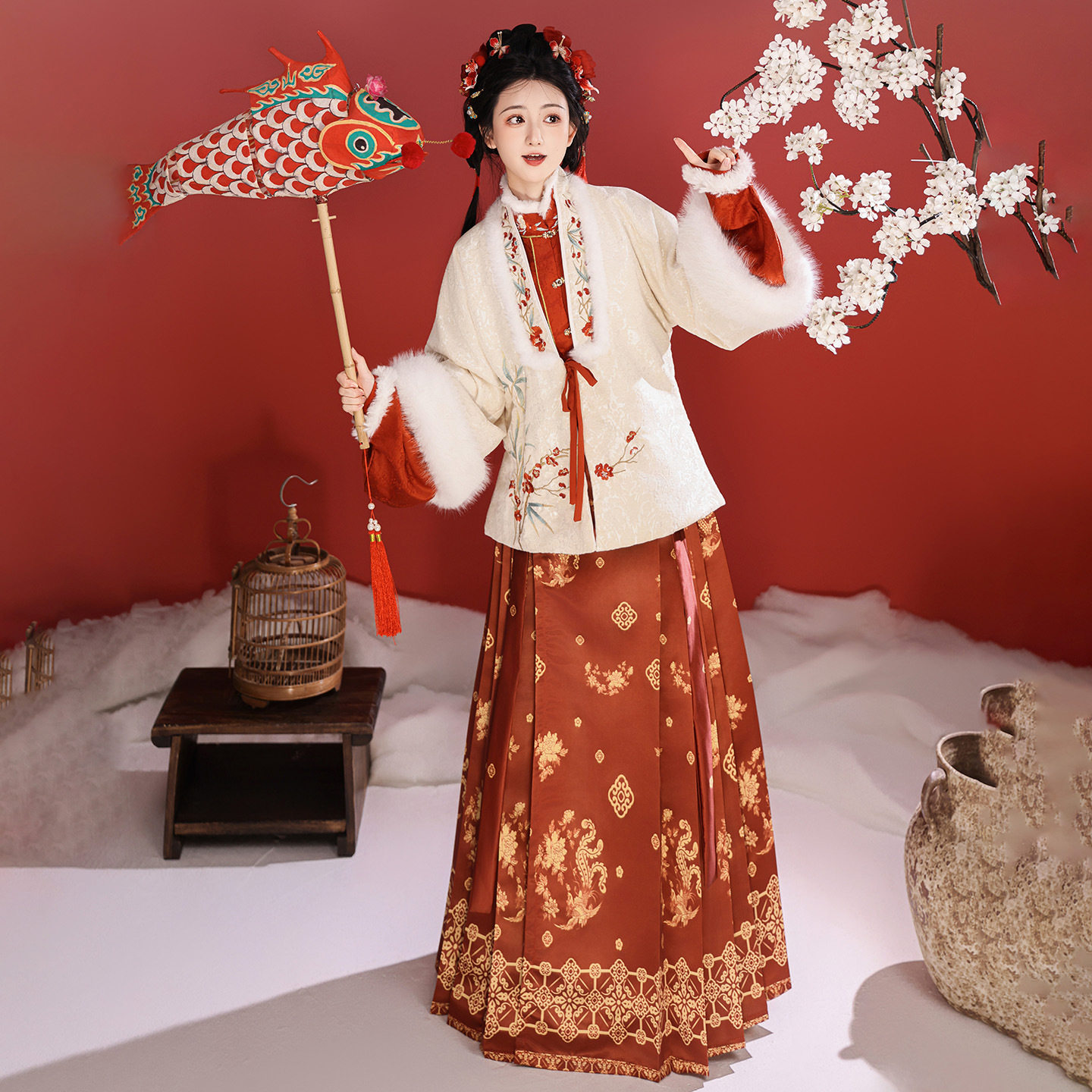 📚 原创明制汉服女款古装中国风冬季短袄内搭马面裙加绒过年服套装