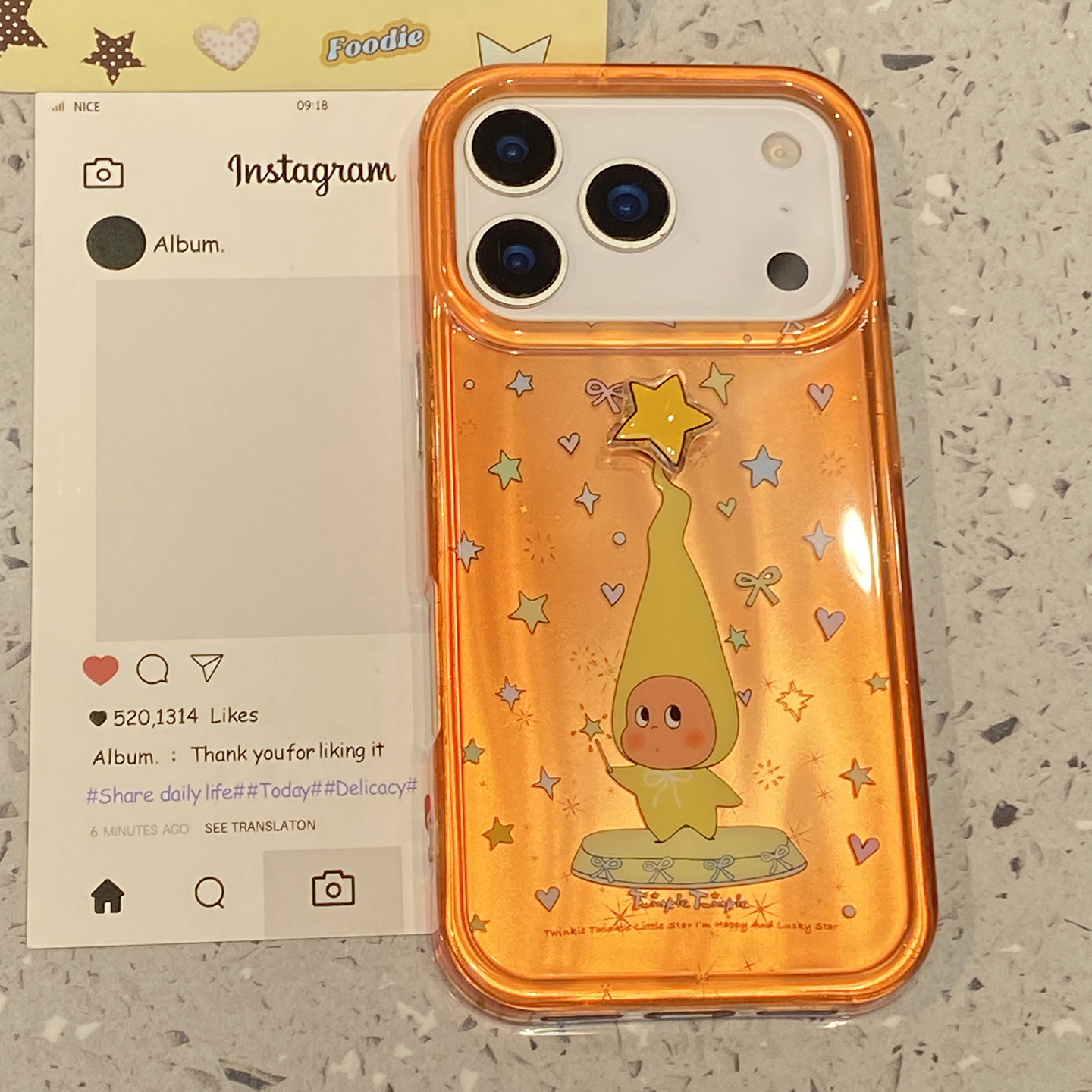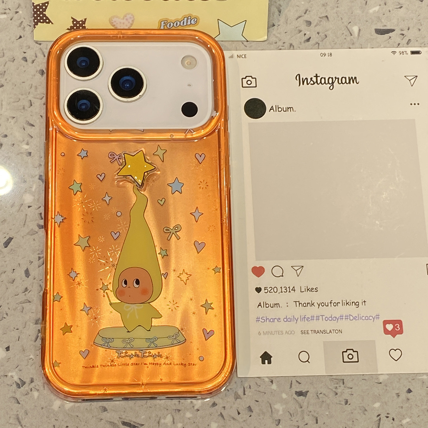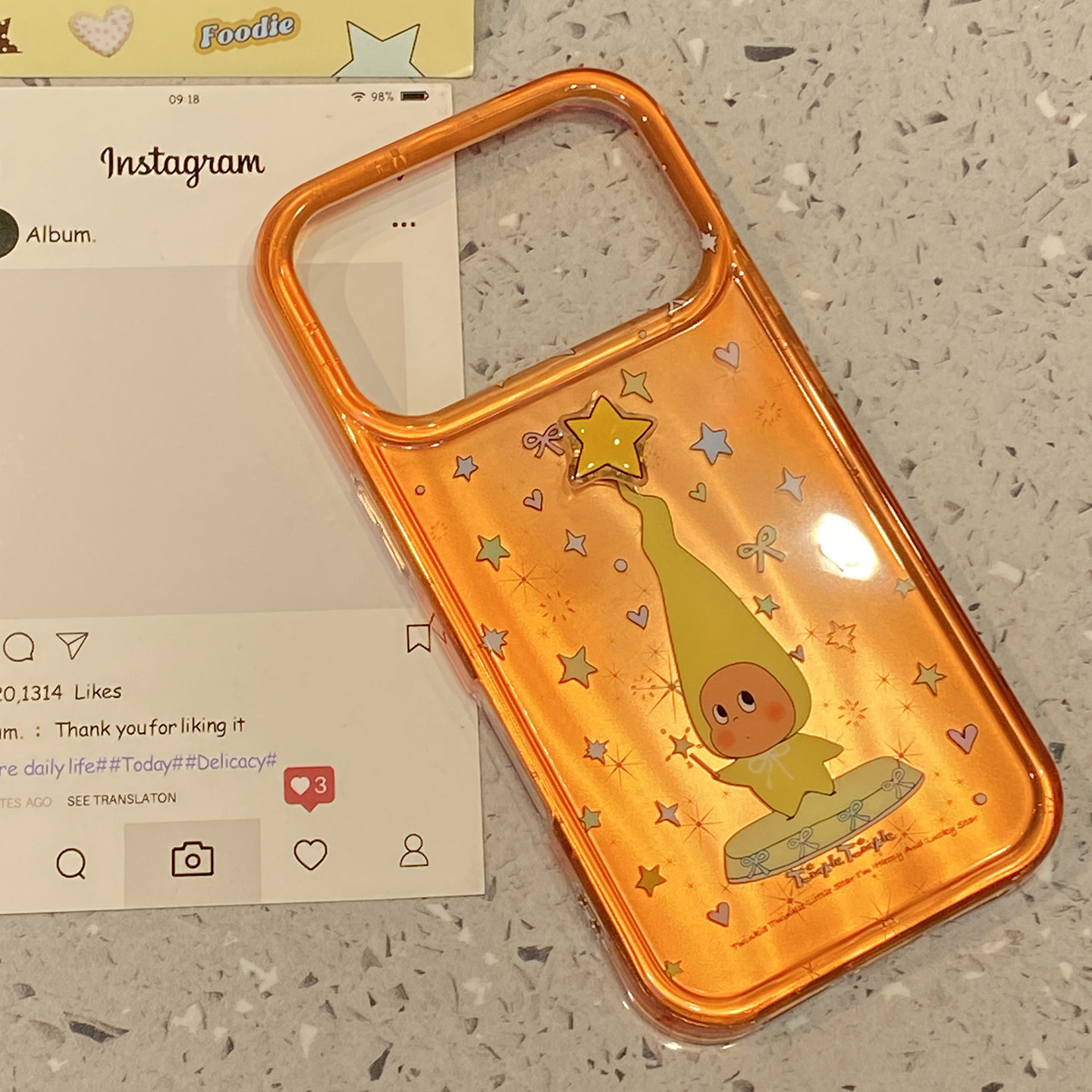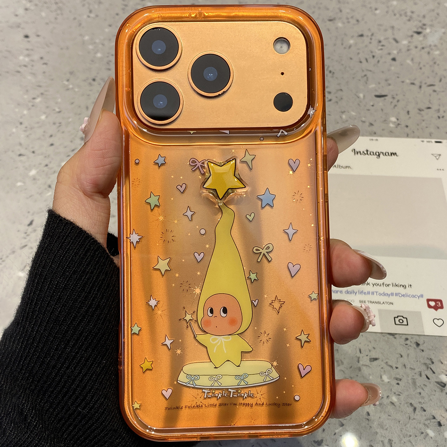 📚 卡通可爱橙底长帽星星人适用于苹果17pro手机壳iphone16保护套14立体13全包新款15promax超好看max个性手机套