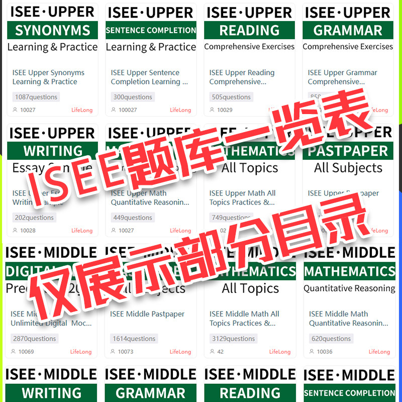 📚 ISEE真题官方机考试upper词汇middle阅读lower数学语法2026练习