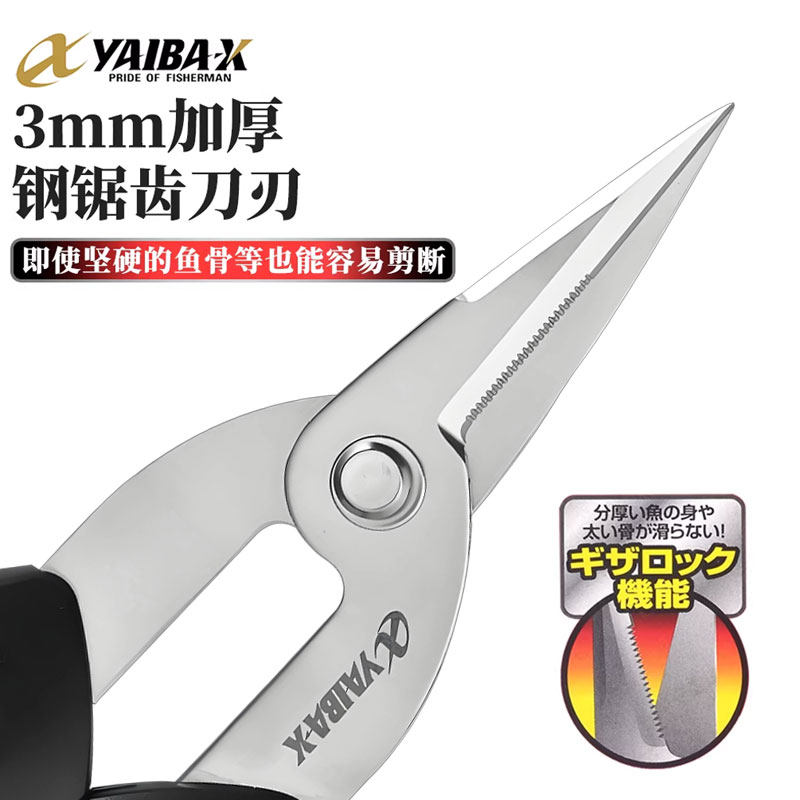 📚 日本YAIBA-X海钓多功能剪刀杀鱼放血剪鱼骨高强度剪刀防锈PE剪刀