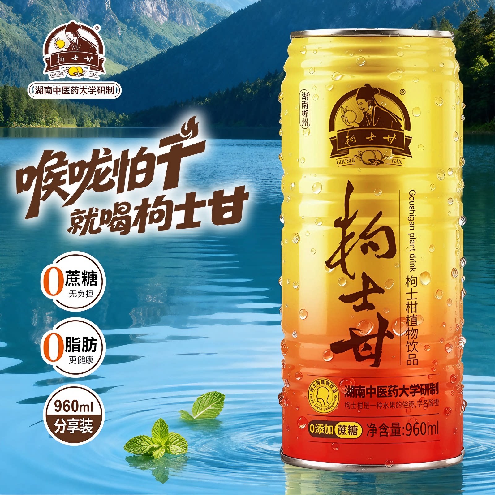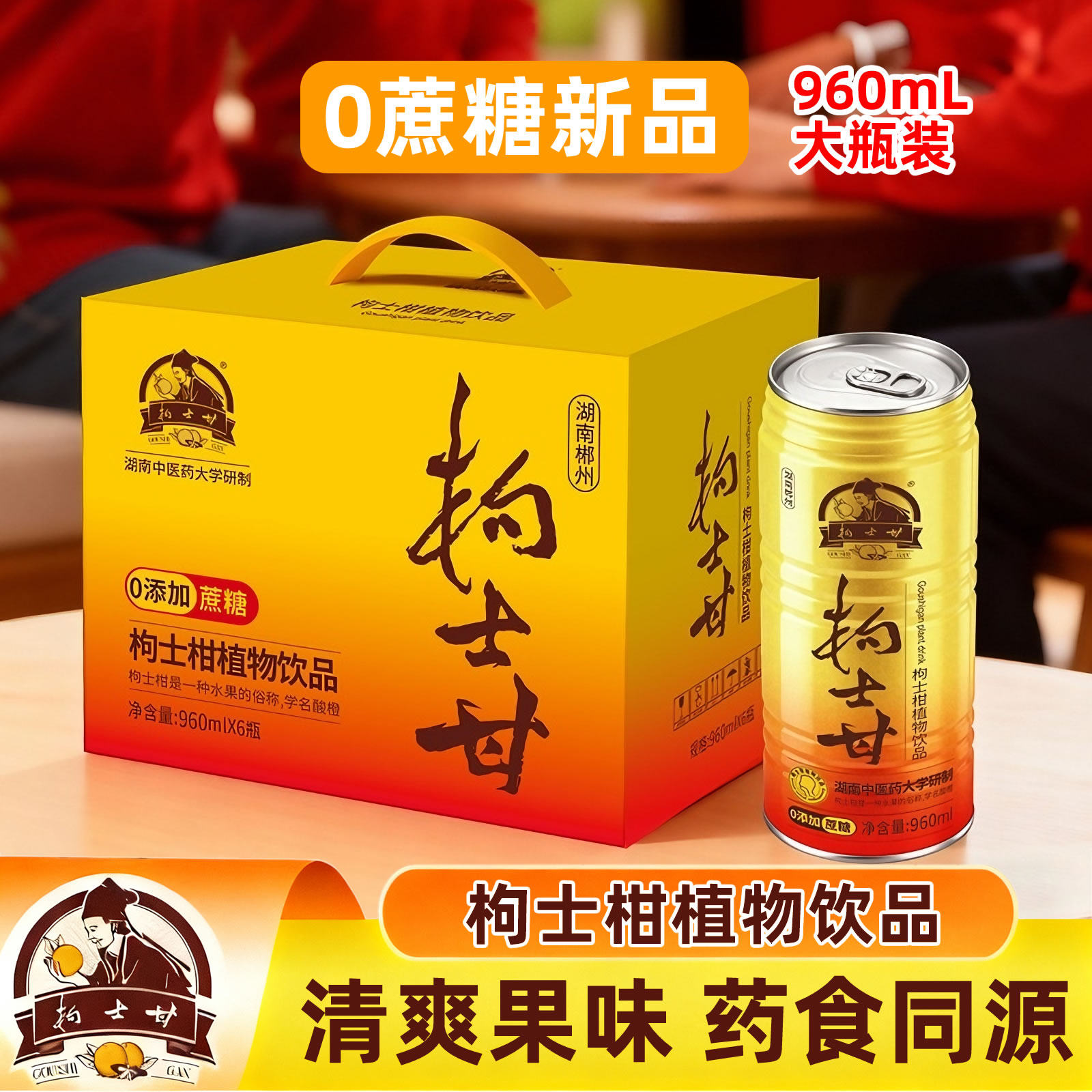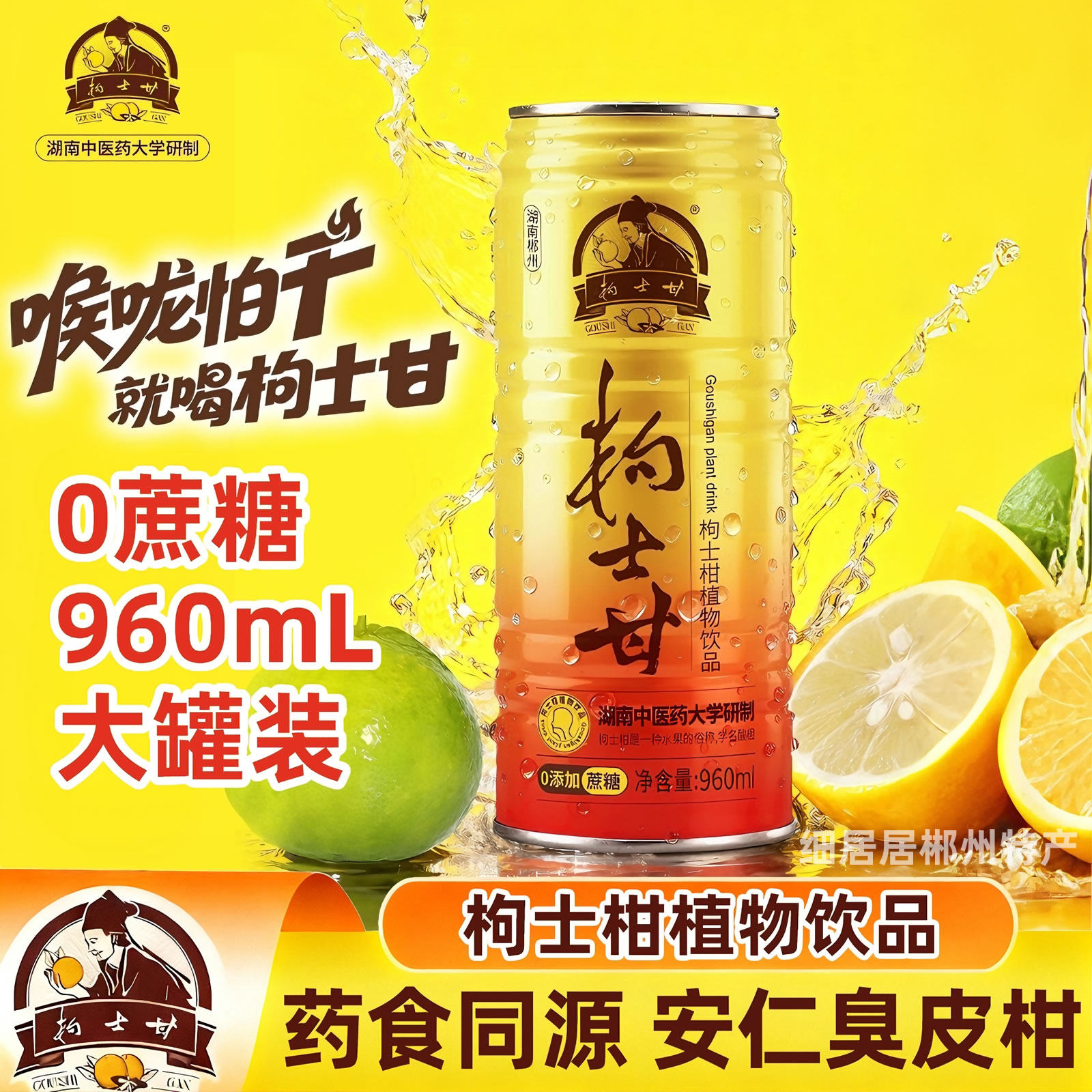 📚 枸士甘臭皮柑植物饮料湖南郴州安仁特产0蔗糖版甘润爽口960mL罐装