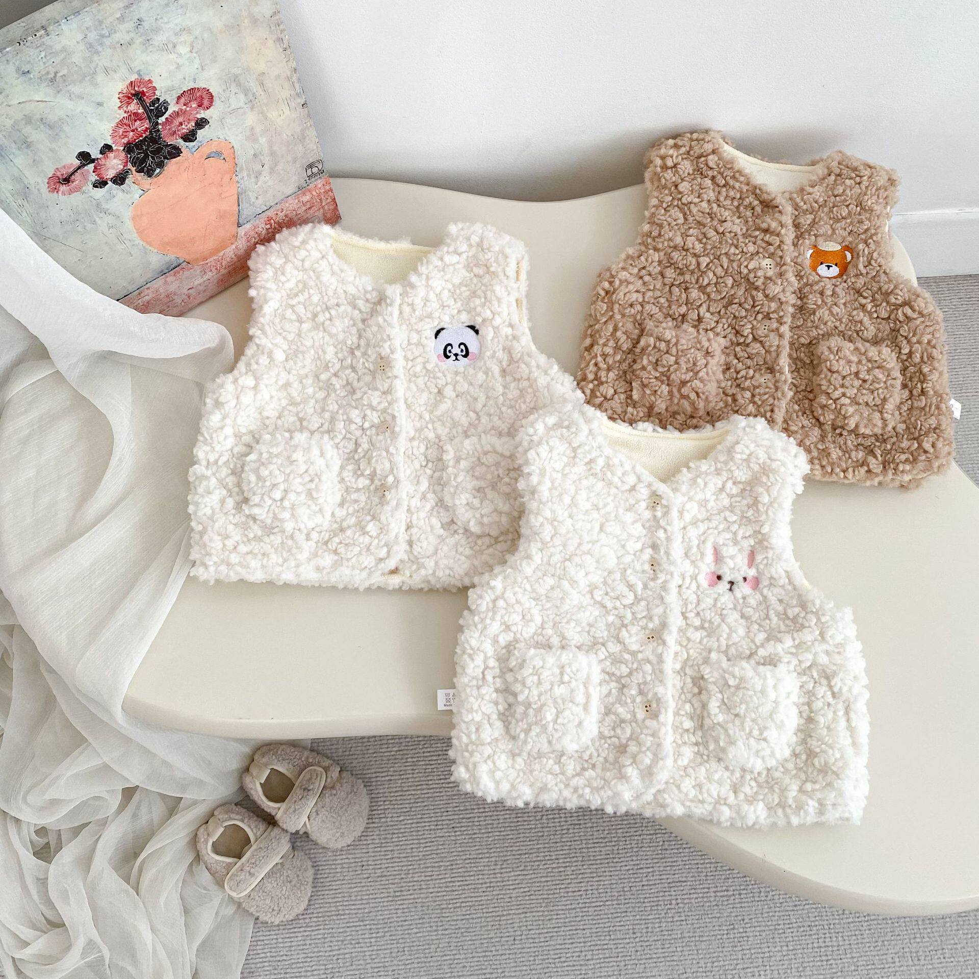 📚 拉果拉新款女童羊羔绒保暖小马甲秋冬款婴幼儿宝宝毛背心保暖神器