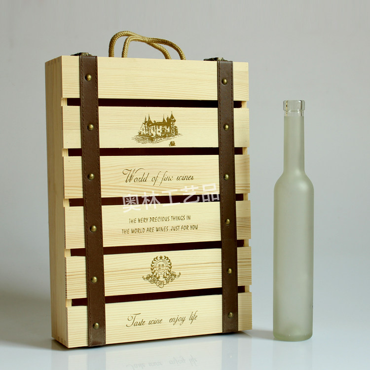 📚 375ml冰酒盒单支实木质红酒包装礼盒双支葡萄酒木盒子红酒箱木箱