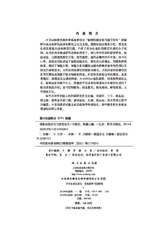📚 植物细胞分化与器官发生 许智宏种康 许智宏 科学出版社