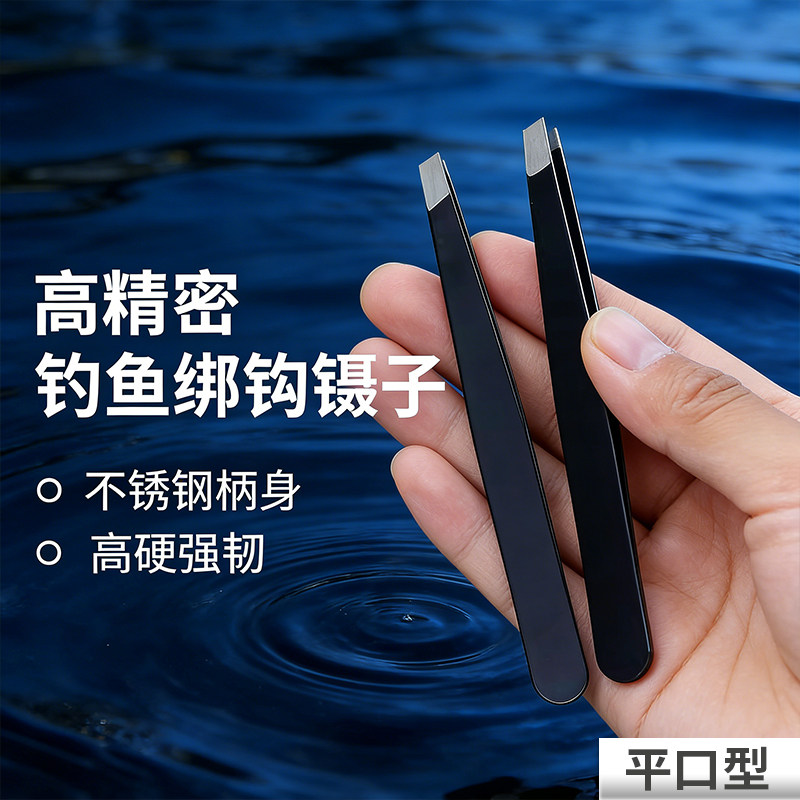 📚 绑钩专用镊子鱼钩夹子高精密钓鱼绑钩镊子不锈钢平口型维修工具