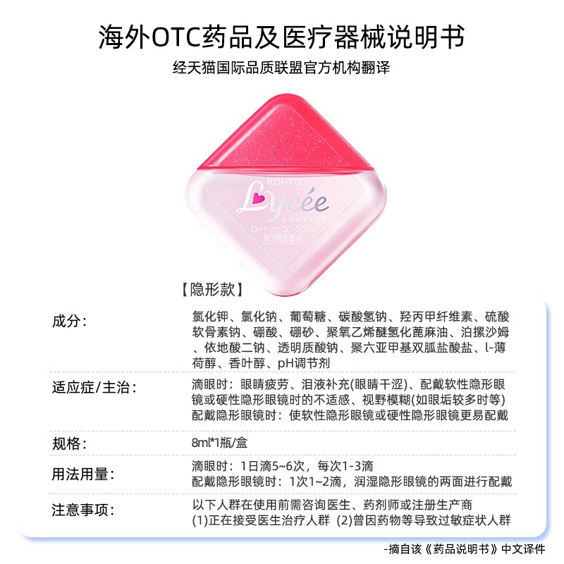 📚 日本乐敦Lycee小粉花隐形眼镜美瞳眼药水滴眼液正品代购小红花8ml