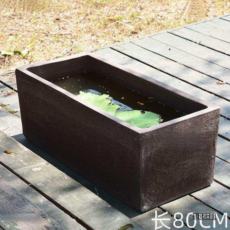 📚 特大号长方形水培花盆粗陶瓷罐别墅户外紫砂陶养鱼荷花睡莲缸