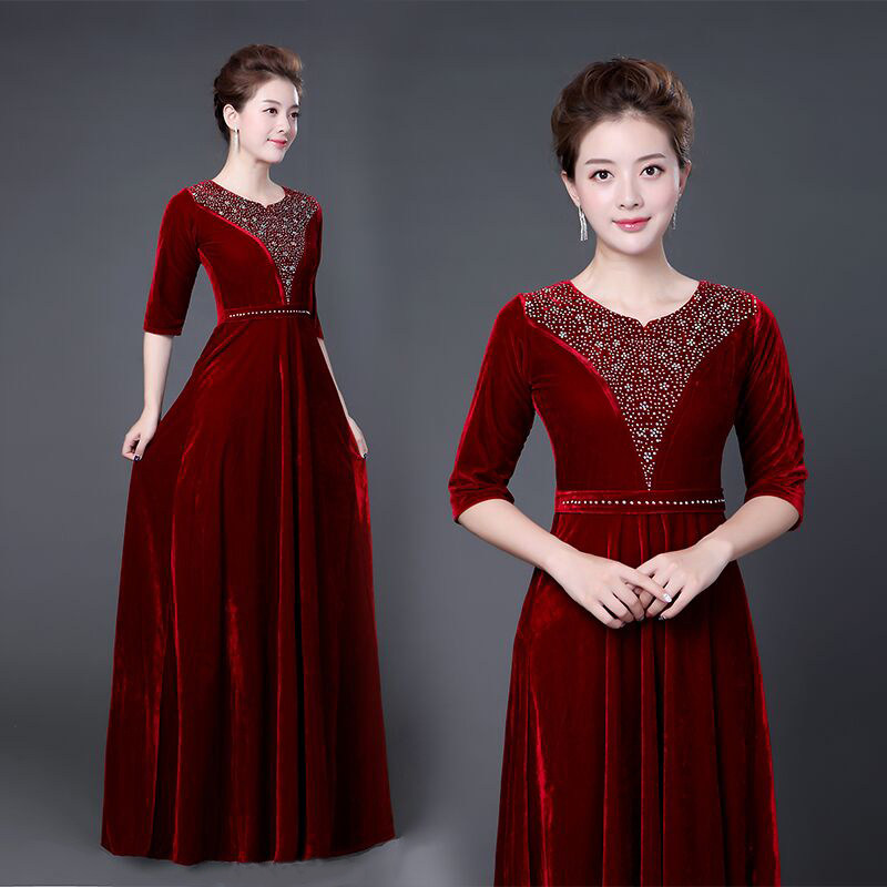 📚 新款金丝绒合唱服主持人大合唱团演出服成人时尚女长裙服装晚礼服