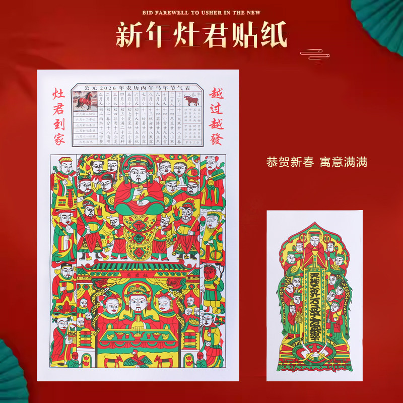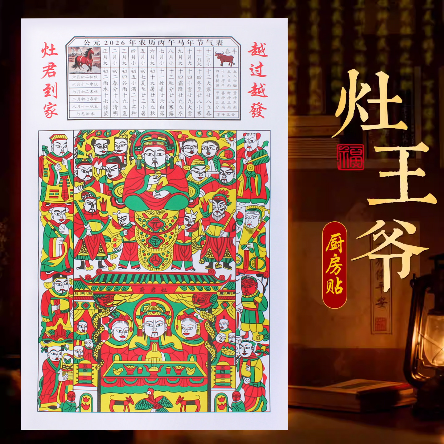 📚 灶王爷灶神像厨房供奉灶君神像灶公像贴纸乔迁入伙财神爷画像贴画