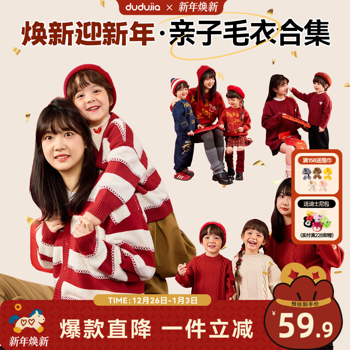 👩👧特别的是,这款毛衣男女同款,女童的拜年服设计也十分出色。穿上它,不仅保暖效果极佳,而且时尚感满满。特别是它的价格,真的是超级划算!现在券后价只要99元,性价比超高!