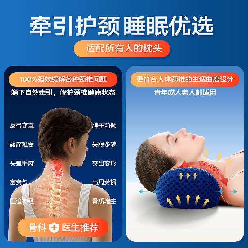 📚 颈椎枕头睡觉艾草热敷助睡眠劲椎成人记忆棉圆颈枕整头云