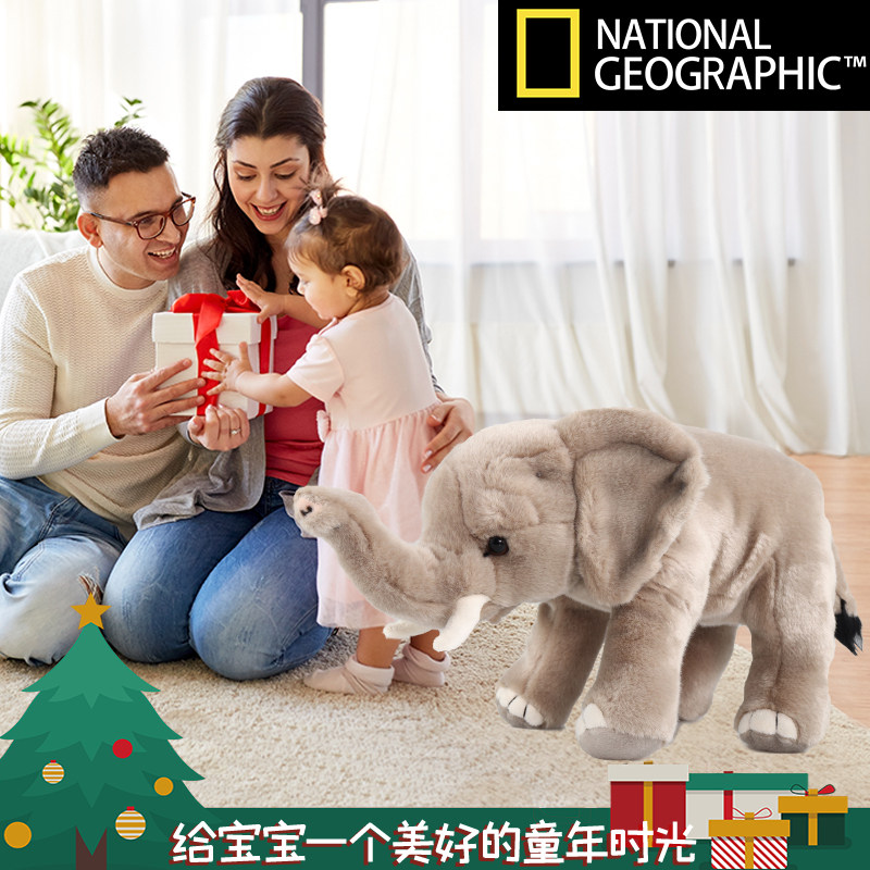 📚 国家地理毛绒玩具仿真大象娃娃亚洲象公仔玩偶抱枕睡觉礼物大号
