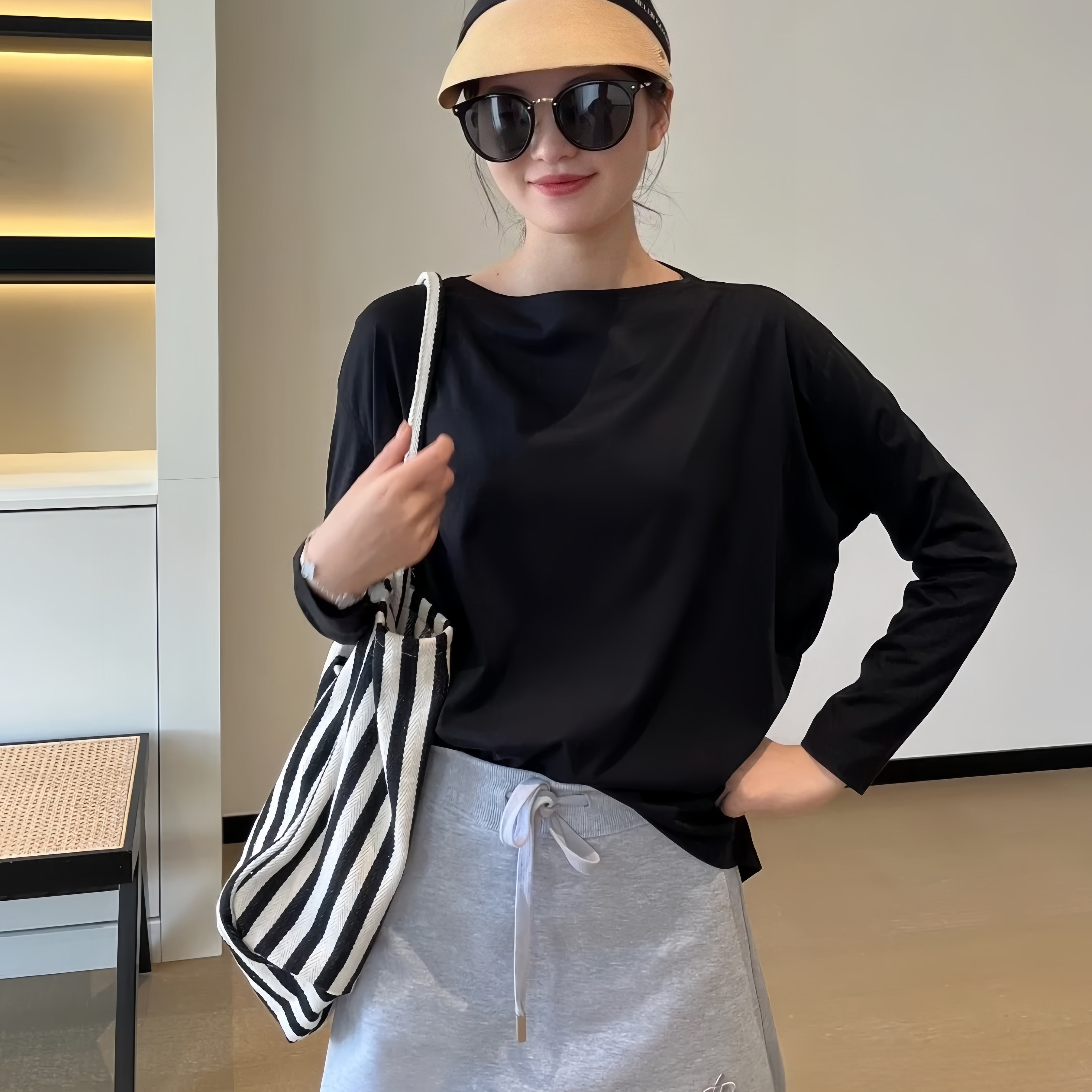 📚 Back in action春夏冰丝防晒衣套头运动上衣一字领长袖