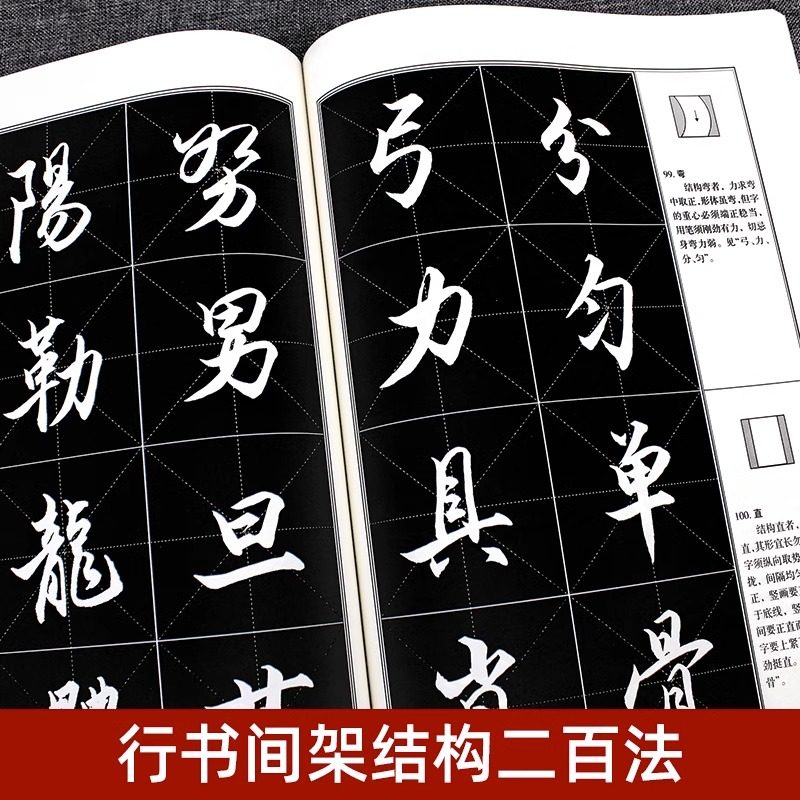 📚 【全3册】行书间架结构二百法+基本笔画二百法+偏旁部首二百法中小学生书法规范教程毛笔书法入门规范毛笔行书书法练字贴湖南美术