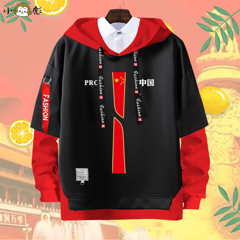 📚 爱国大国崛起中国制造CHINA中国假两件连帽卫衣男女儿童学生外套