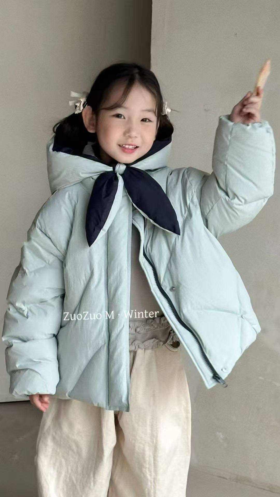 📚 2025新款韩版中大童女童蝴蝶结连帽羽绒服帽子可拆卸