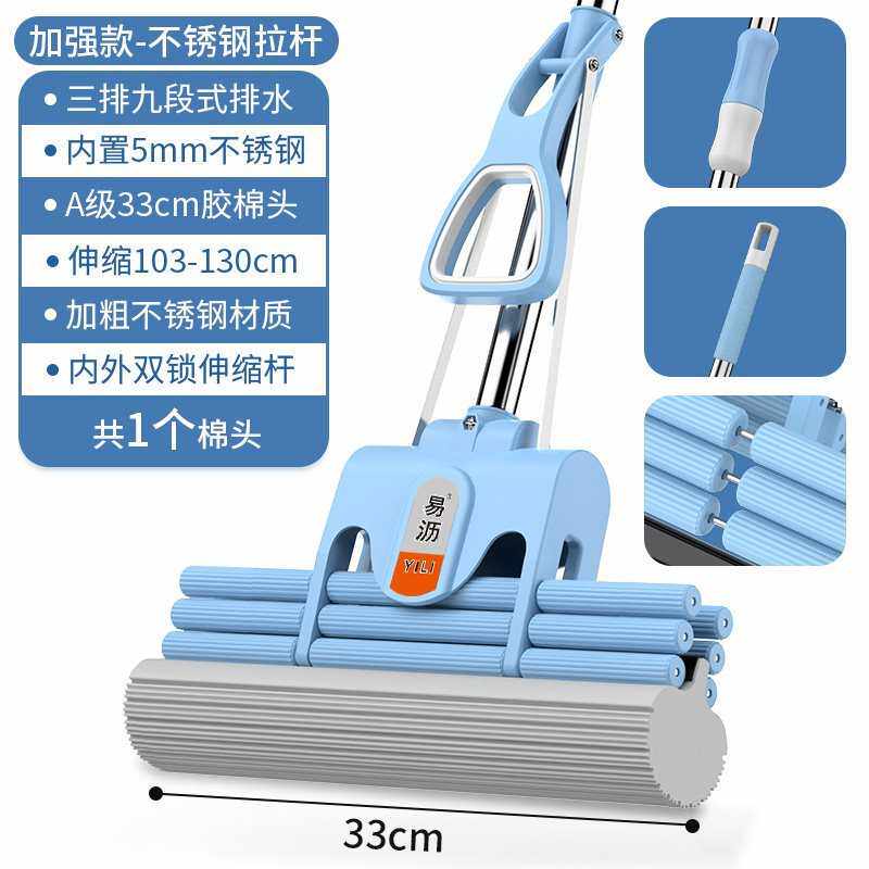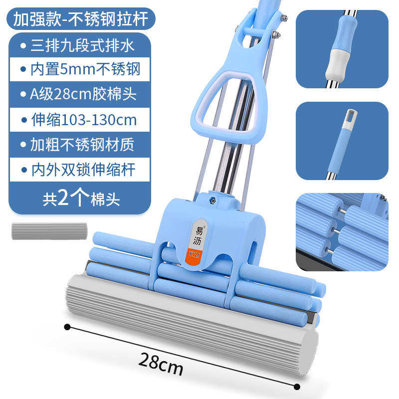 📚 免拖把结实胶^不锈钢手加粗滚轮式地m洗棉海绵耐用家用吸水头