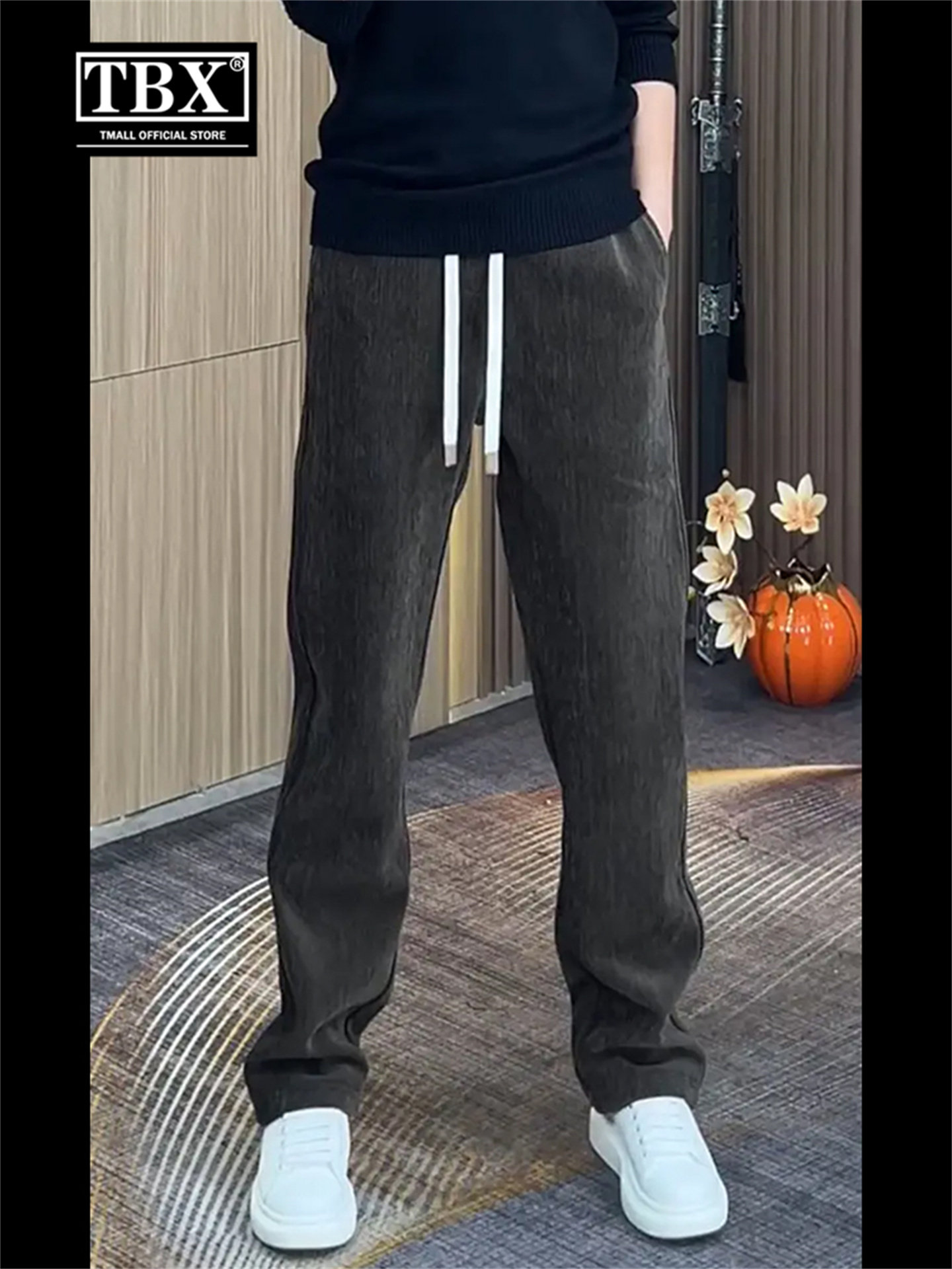 📚 高端条绒运动卫裤男士2025新款春秋冬季加绒男裤直筒休闲裤子男款
