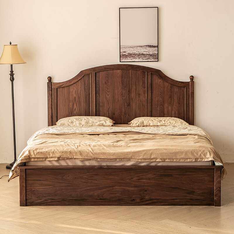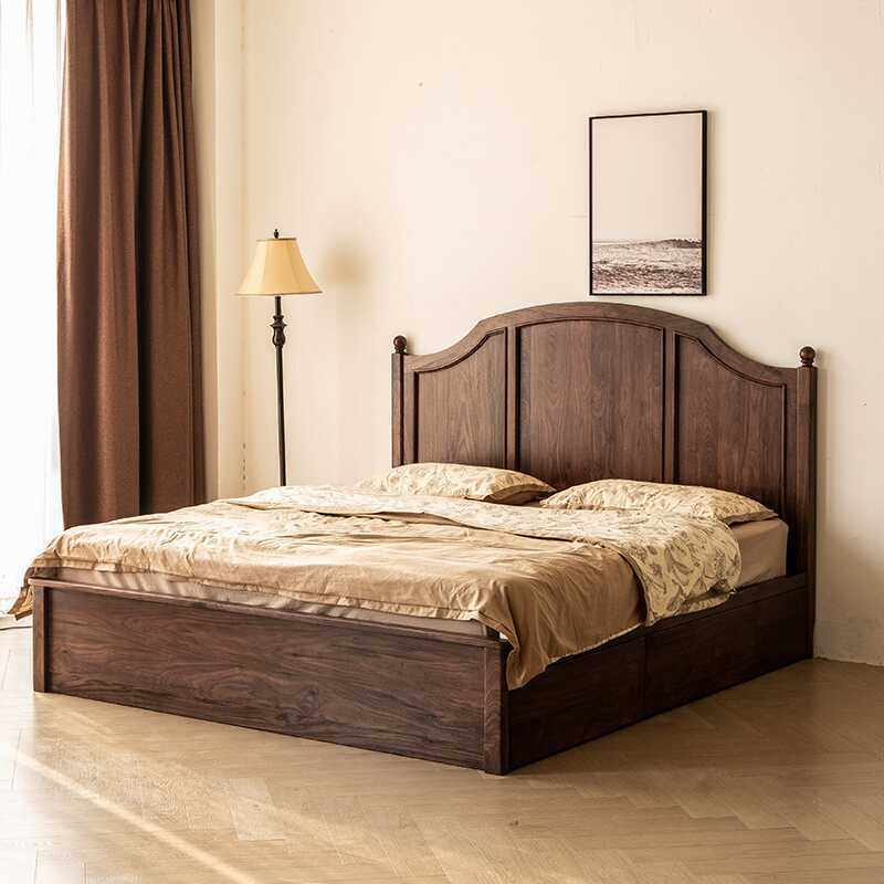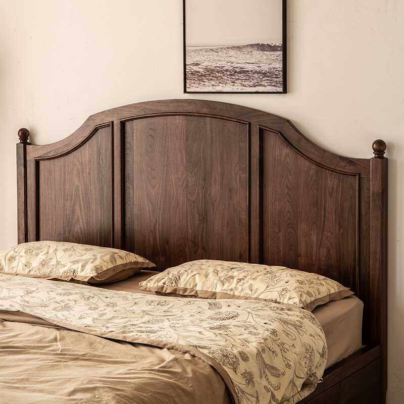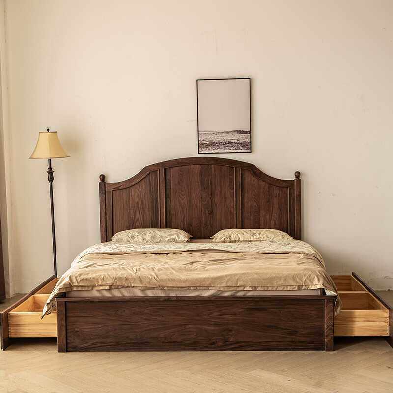 📚 全实木储物床北美黑胡桃木法式复古高靠背樱桃木抽屉轻奢床双人床